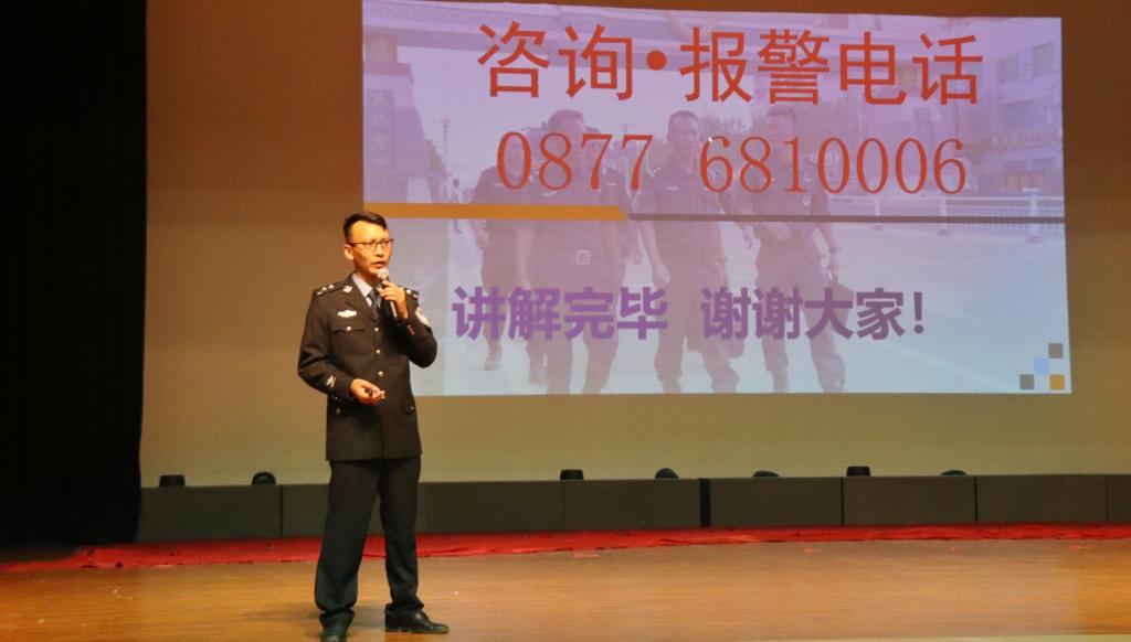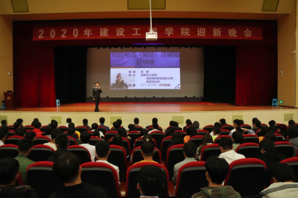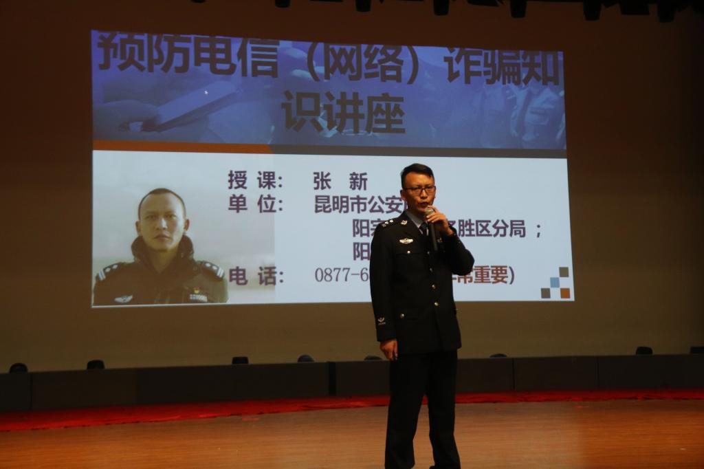 昆明市公安局阳宗海风景名胜区分局张新警官担任此次讲座的主讲人,世界杯体育官方网站党总支副书记张星星老师、辅导员张诗琴老师,以及2020级全体新生参加了此次讲座。