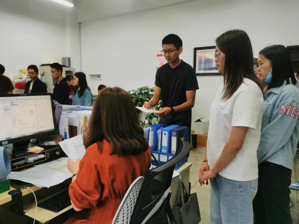7月13日一早,国土管理学院学工办全体老师、17级毕业班班主任齐聚学院办公室,再次清点核查2020届毕业生各项材料,随后,老师们在教室里迎接前来办理离校手续的毕业生。