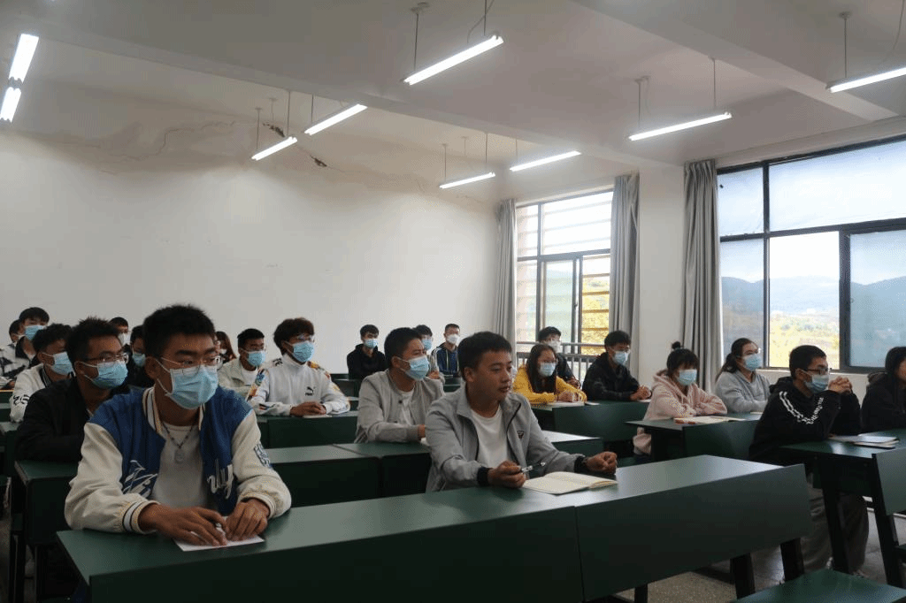 接着,谭兵老师围绕“我们为什么要了解校史”这一问题展开了讲述,他结合习近平总书记提出的“不忘初心”,向同学们介绍了国土学校的发展史。他强调,国土学校的发展史是一部艰苦拼搏的奋斗史。从建校至今,国土学校一直秉持“以献身地质事业为荣,以找矿立功为荣,以艰苦奋斗为荣”的“三光荣精神”,在一批又一批教职工的辛勤付出、开拓创新下才建成这所综合应用型的高职院校。谭老师还对同学们给予厚望,希望同学们牢记学校发展史,传承好国土学校奋斗精神,珍惜当下的大学生活。