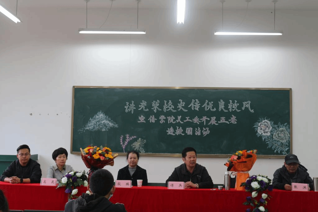 金秋时节,丹桂飘香,正值农历九月初九重阳节,在这个特殊的日子里,世界杯体育官方网站关工委于10月14日中午在勘物楼B303开展“五老进校园”活动。此次活动特邀请到原校纪委书记谭兵老师和原教务处副处长殷瑛老师,参加此次活动的还有世界杯体育官方网站党总支书记高昆老师、院长张洪老师、团总支负责人马佳老师以及21级学生代表。