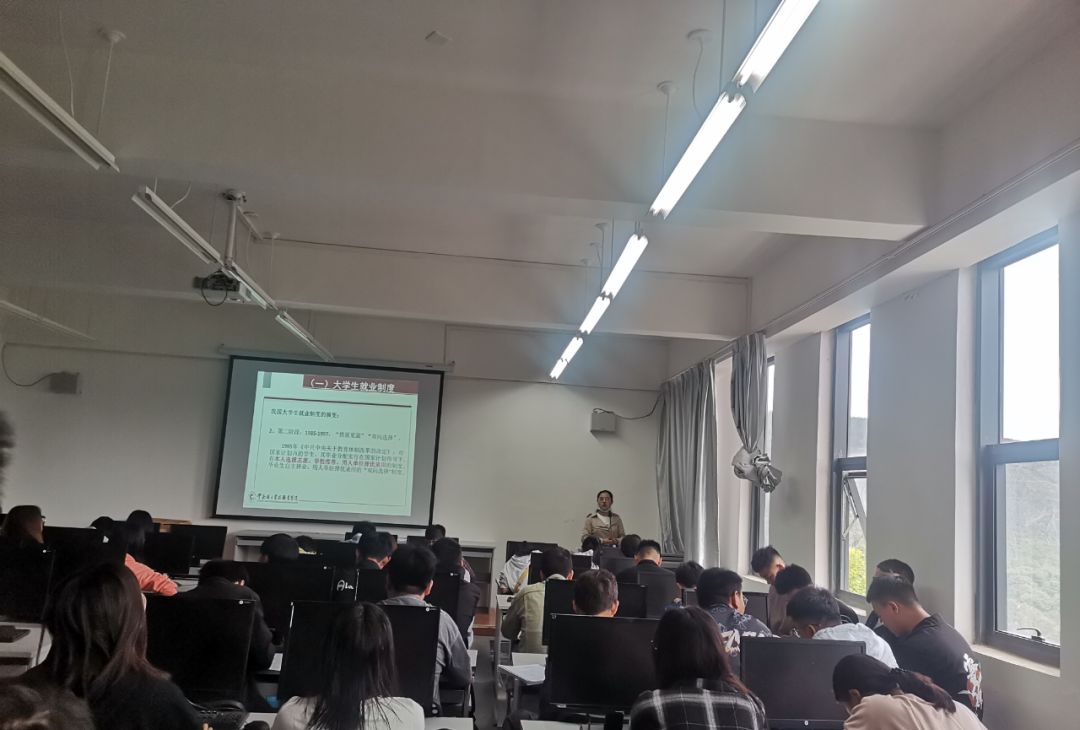 辅导员首先用近5年全国大学生毕业、就业数据比对,让同学们认识到大学生就业形势的严峻性;其次,宣传普及了国家促进大学生就业的“六保”“六稳”政策,让同学们充分了解国家对大学生服务基层、自主创业、参军入伍和继续升学等方面的优惠政策,以及如何运用相关政策。同时,全面梳理了大学生积极就业的各种途径,激发学生努力掌握专业技能,着力提升个人竞争力的欲望。再次,详细介绍了继续升学、参加公考或事业单位考试、服务基层、自主创业的基本要求和注意事项,鼓励同学们多元化就业,努力找到适合自己的职业岗位和发展方向。最后,针对同学们面临的顶岗实习岗位选择、专升本备考、公考和事业单位备考、自主创业等问题,和辅导员和班主任与同学们面对面展开交流,帮助同学们答疑解惑。