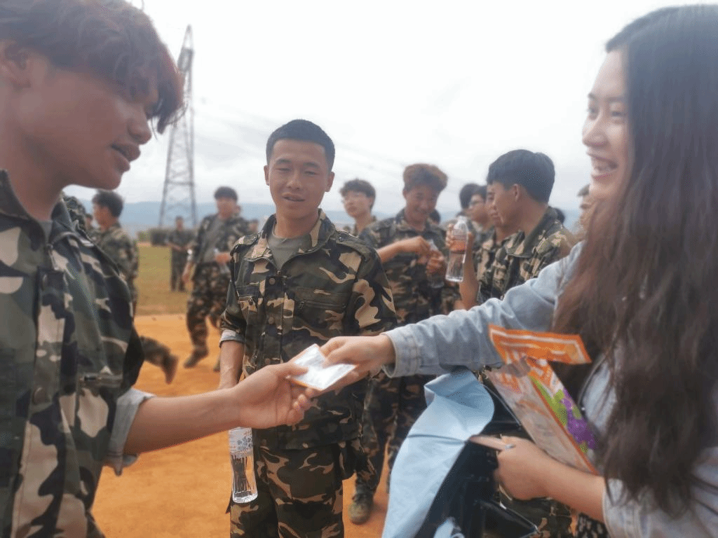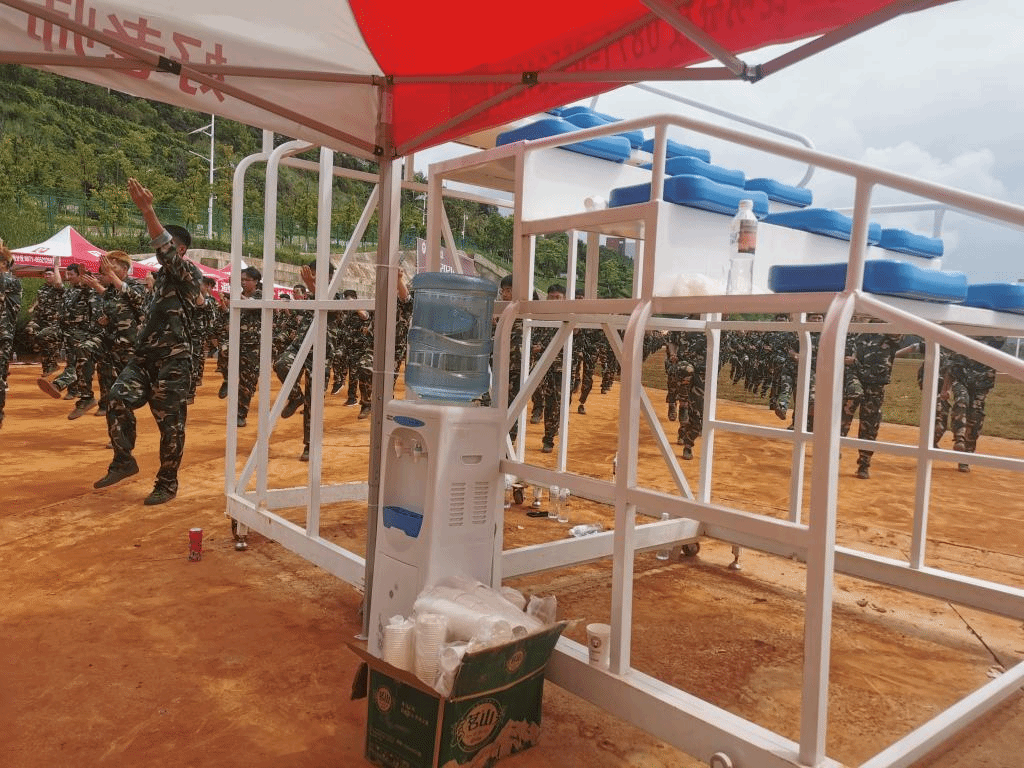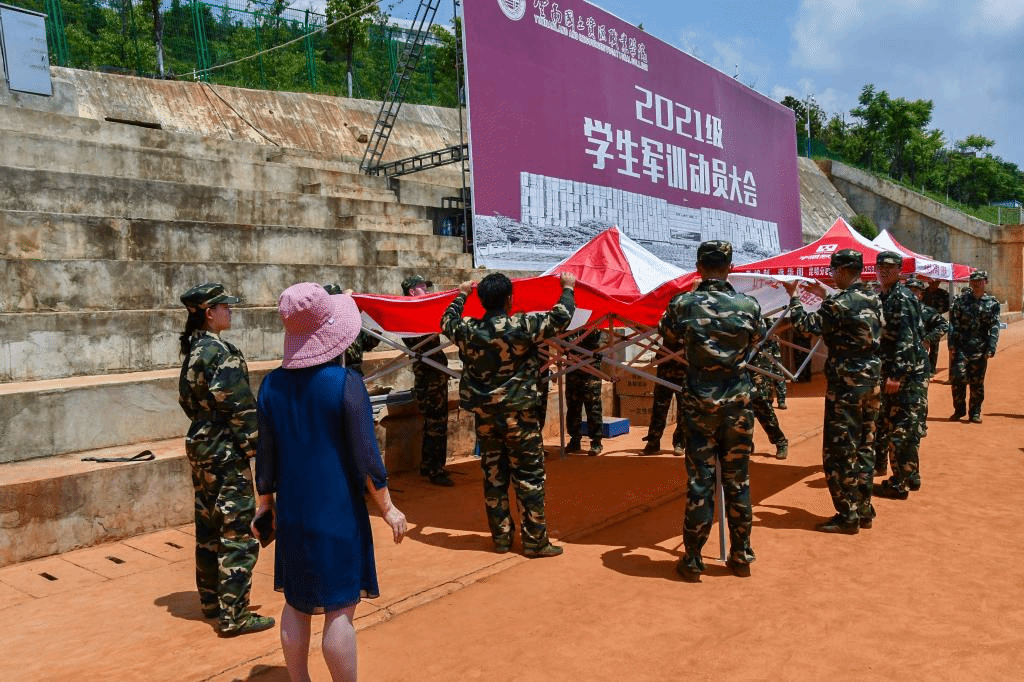 近日,2021级学生军训正在如火如荼地进行着,天气也分外炎热,世界杯体育官方网站2021级学生训练场地为学校阳宗海校区腾龙运动场,运动场开阔空旷,无遮阴物,炎热的天气虽然有利于磨练同学们的意志力,但也容易产生不适。为缓解同学们的军训压力,让同学们休息时有个躲阴处,世界杯体育官方网站积极联系赞助单位,于77-8日与华图教育携手共同为军训的同学们送去沁人心脾的清凉和真心实意的关怀。