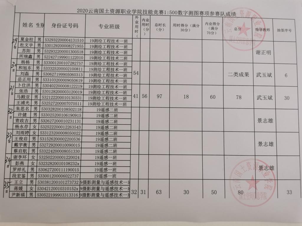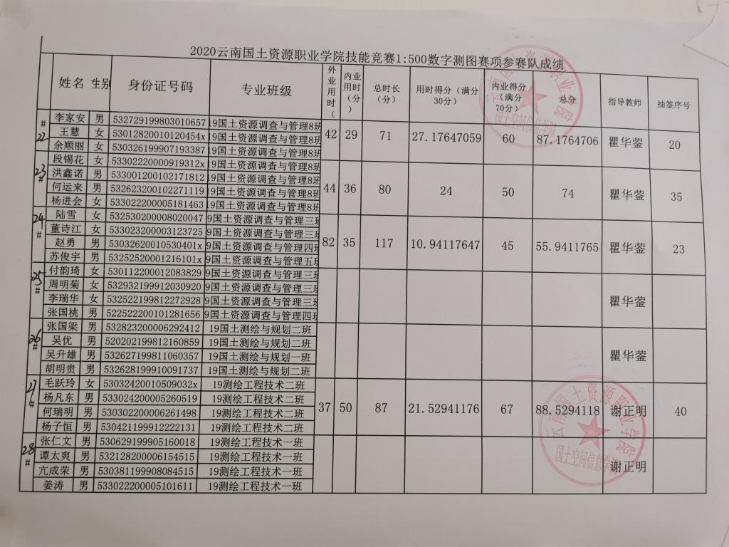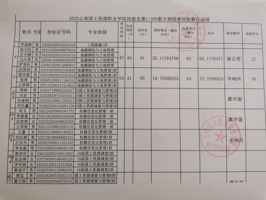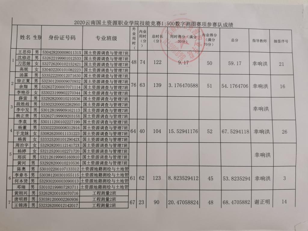 世界杯体育官方网站1:500数字测图技能竞赛成绩公示