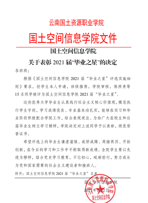 世界杯体育官方网站关于表彰2021届“毕业之星”的决定