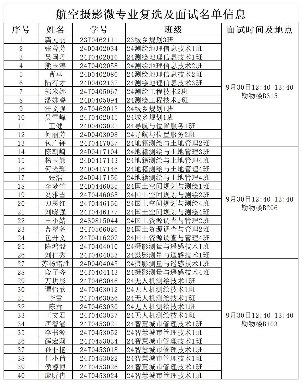 世界杯体育官方网站航空摄影微专业招生通知自发布后,收到众多学生及家长的咨询和反馈,选拔工作组本着公平公正公开的原则,对所有报名者的基本资格以及申请陈述进行审核,最终选拔出40名同学进入复选及面试环节。具体名单如下表。请名单上的同学于9月30日12:40前到指定地点进行复选及面试,逾期视为放弃。