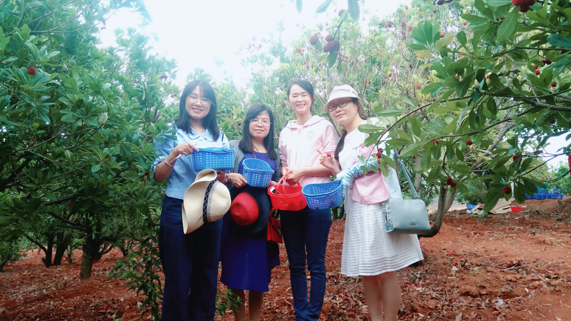 全体教职员工自驾到目的地后,教师们人手一个小篮子进行采摘,杨梅漫山遍野飘红,果肉厚实酸甜可口,更加激涨了教师们的热情,教师们三五成队遍布杨梅林,沉浸在一片欢声笑语中。虽然天气炎热,但是活动进行顺利,在采摘杨梅过程中,教师们互相帮助,分享甜美果实。最后,教师们合影留念。