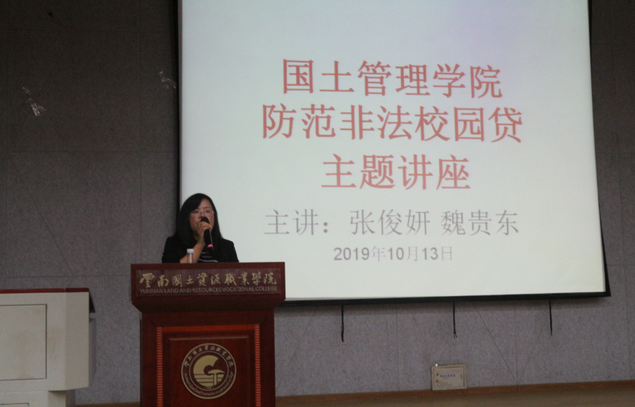 为提升同学们的对校园贷的防范意识,避免校园贷现象,降低校园贷风险。2019年10月13日晚19:00―21:00,国土管理学院在红山讲堂和勘物楼B316教室分别展开防范非法校园贷主题讲座。本次讲座由国土管理学院党总支副书记张俊妍和学工办主任魏贵东老师分别、分批次主讲,学院17-19级级全体学生参加了此次讲座。
