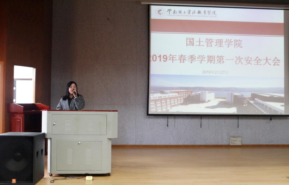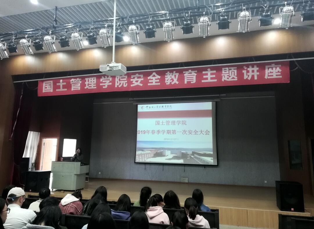 为增强学生们的安全意识,提高学生自我保护能力。2019年2月27日17点,国土管理学院在红山讲堂对17级、18级全体学生分别召开了2019年度安全教育讲座,国土管理学院党总支副书记张俊妍老师主讲此次讲座,辅导员张甲子、杨骐璟老师及17级,18级全体同学参加了此次安全教育讲座。