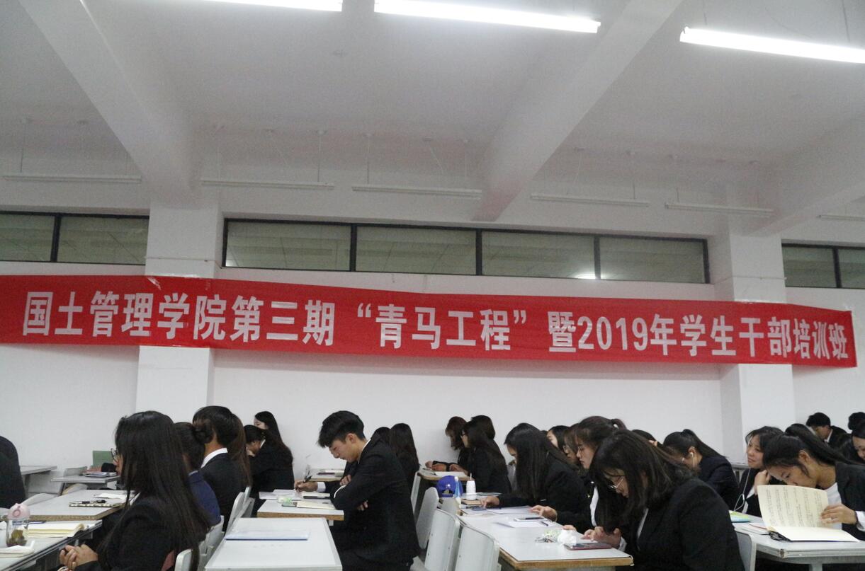 为提高国土管理学院学生干部的思想政治素质、实践组织协调能力,进一步加强坚定跟党走的道路信念。我校校团委书记关利钦老师于2019年3月19日晚19:00时在堪物楼B213为国土管理学院学生干部带来第三期“青马工程”学生干部培训第六讲——团课。参加本次培训的有国土管理学院团总支书记张桂枝老师,学生会各部门负责人,以及18级各班班干部。