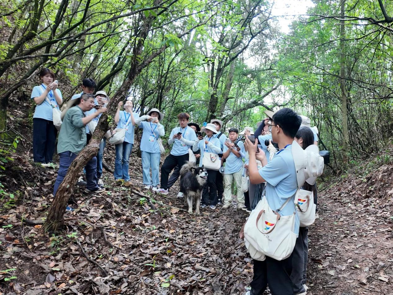 上午,团队成员在保护区工作人员的带领下从苗尾管护站出发,途经保护区的核心区域,世界杯体育官方网站副院长沈金祥向同学们讲解典型多种野生植物的生长状况,同学们通过这场别开生面的“行走课堂”亲自触摸、观察树种,切身感受到了保护区内的生物多样性。