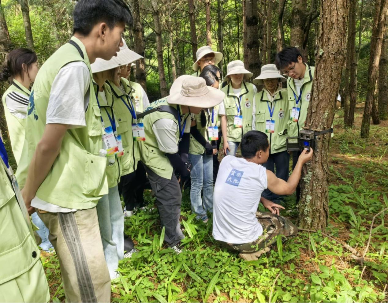 参观学习结束后,团队成员继续围绕天池生态步道开展生物多样性调查。杨老师实地介绍了保护区内动植物的生态环境,向同学介绍了红外相机的工作原理,与同学一起观看野外红外相机所监测到的野生动物影像,使同学们对生物多样性保护工作有了更立体、更深刻的理解。