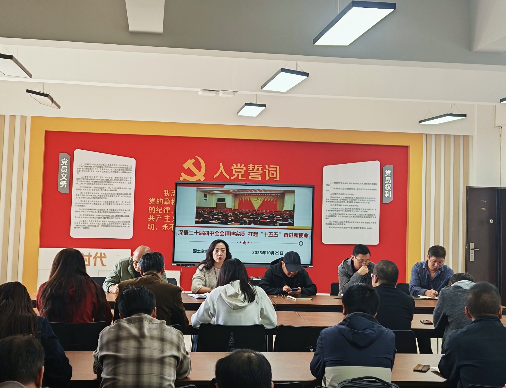 10月29日,学院在勘物楼A609召开全体教职工会议,学习贯彻习近平总书记在党的二十届四中全会上的重要讲话和全会精神,学习习近平总书记近期重要讲话、重要指示精神,落实学校党政近期工作部署及学院党务、教学、学工等工作。