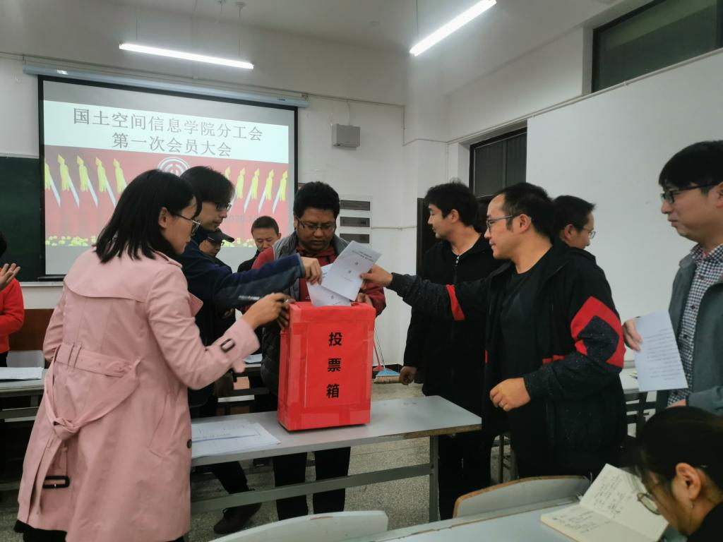 10月16日下午,在雄壮的国歌声中,世界杯体育官方网站分工会第一次会员大会暨换届选举大会在勘物楼B213举行,分工会50位会员参加了大会,大会由学院党总支书记高昆主持。