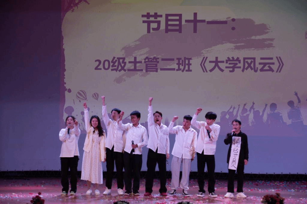 20土管8班、工测3班的歌曲《南方姑娘》歌声婉转灵动,将南方姑娘的温婉淋漓尽致得表现了出来;20土管2百班的小品《大学风云》以诙谐的方式,滑稽的动作,幽默的语言,让在场的师生们捧怀大笑,同时也告诫大家要远离网贷,警惕网络诈骗;21城市1班的舞蹈《奇迹再现》用欢腾的歌曲、灵动的舞步,让在场的观众梦回童年时代;20土管2班的说唱歌曲《无人区玫瑰》引发观众跟唱,现场气氛超然;21土管7班的舞蹈《月光下的凤尾竹》演绎出了月光下的竹林里,一群傣族姑娘轻柔美丽的舞姿。