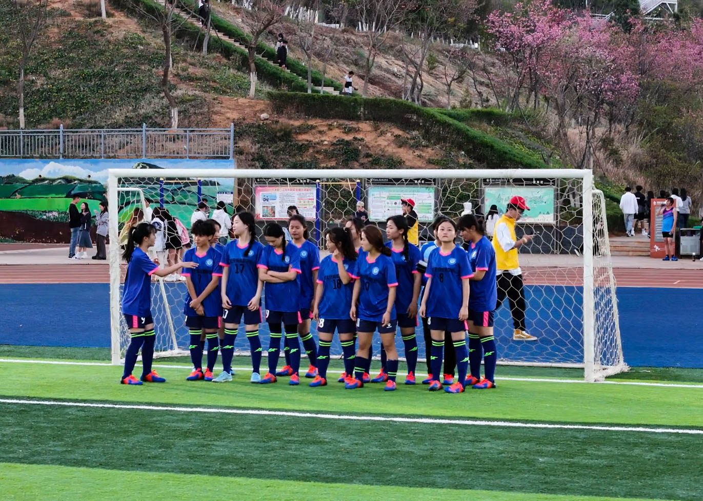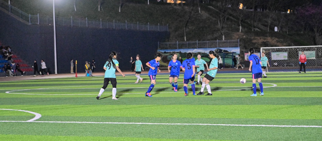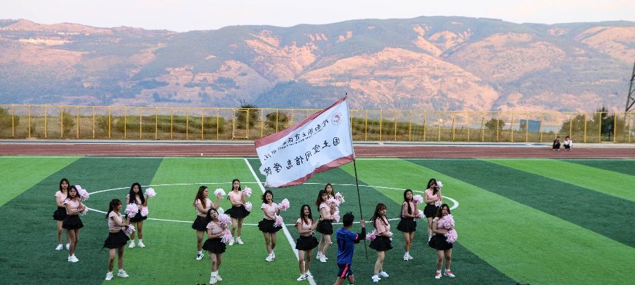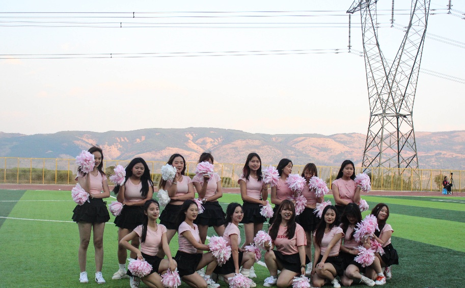 中场休息时,音乐在跳动,青春在飞扬,拉拉队女团闪亮登场。一个个笑容如花绽放,那是最美的青春模样;一束束花球如碧波荡漾,那是最亮的青春影像。