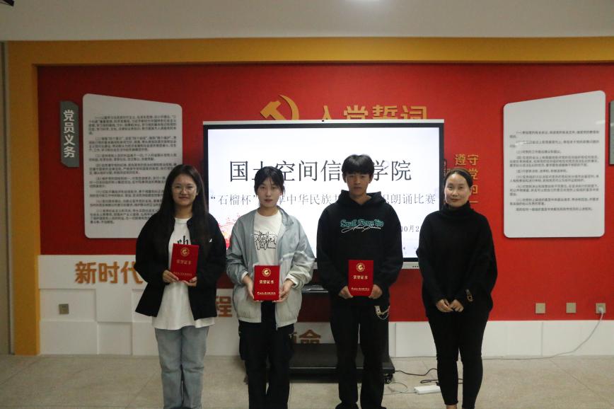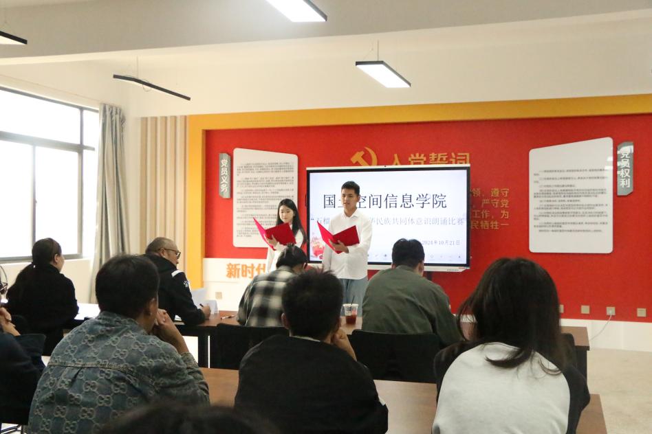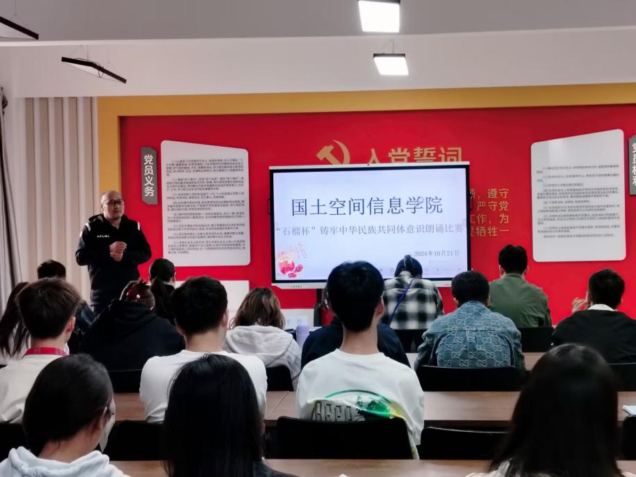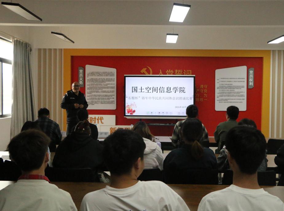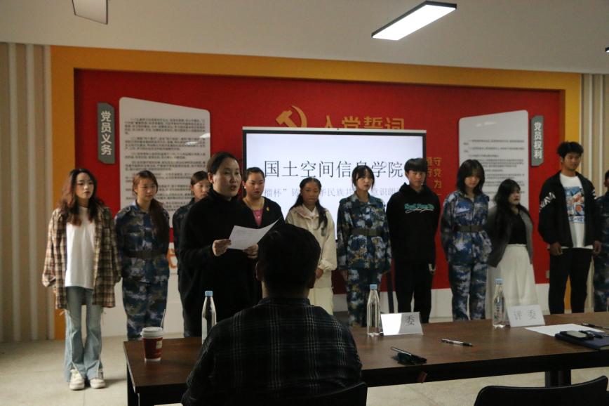 为全面贯彻落实中央和省委民族宗教工作会议精神,传承和弘扬红色精神与民族团结精神,进一步激发同学们的爱国情怀,世界杯体育官方网站于10月21日在勘物楼A609举行“筑基培元绽芳华”之“石榴杯”铸牢中华民族共同体意识朗诵比赛。本次比赛邀请了学院党委副书记和万荣,团总支负责人马佳,孙嘉蔚、裴凤娟、史鹏飞共5位老师担任比赛评委。