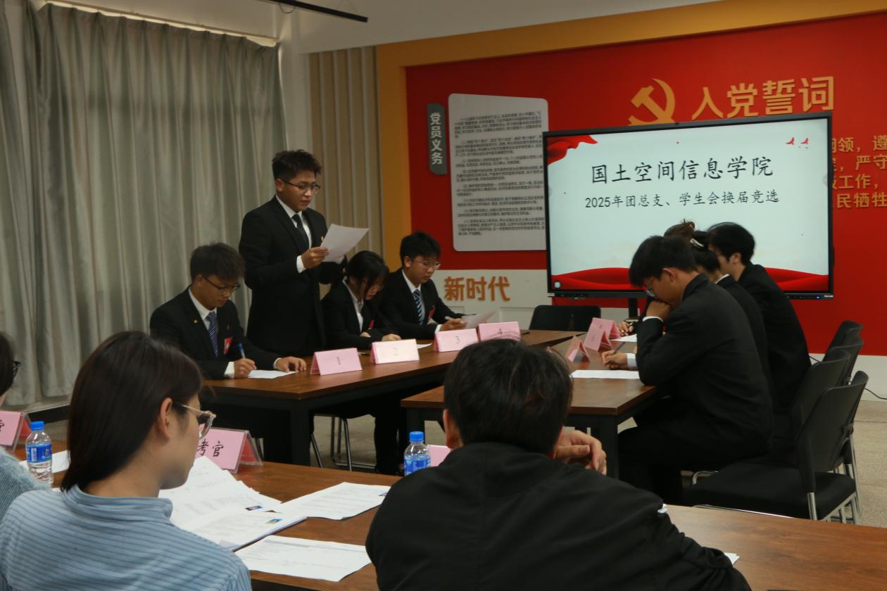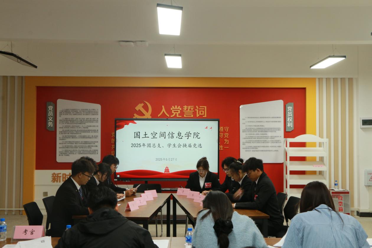 2025年5月27日,2025年世界杯体育官方网站团总支学生会换届竞选活动在勘物楼A609成功举办,旨在为组织注入新鲜血液,传承服务精神,凝聚青年奋进力量。学院团总支负责人马佳、学生工作负责人孙嘉蔚、石小倩、陈秒单、郭燕老师、2023级各部门干部及2024级53名候选人参加。