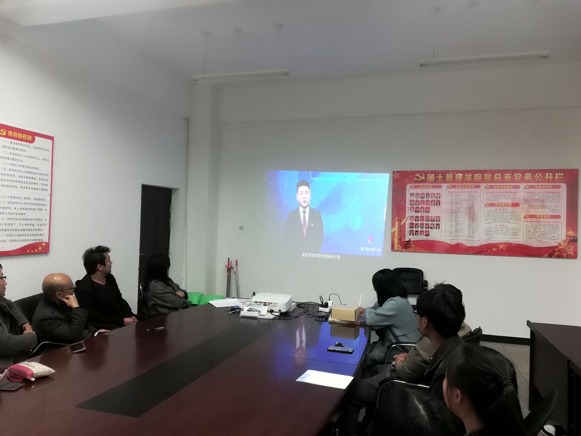 接中共云南省委组织部通知,2019年2月27日晚,国土管理学院党总支在勘物楼B211会议室组织观看“云岭先峰”夜校访谈节目,学院全体党员教师、17级入党积极分子观看了此次访谈节目。