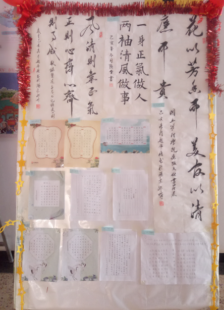 本次比赛,师生们投入了极大的热情,积极发挥自身长处,踊跃报名,所征集参赛作品主要有书法、绘画、手抄报三类,共计二十余件。12月10日中午12:40,由学院张洪老师、张俊妍老师、沈映政老师、费丽娜老师、付文静老师担任评委,评委老师们认真观看参赛作品,对同学们的创作进行了高度的评价,最后评选出一等奖共4名,二等奖共5名,三等奖共10名。