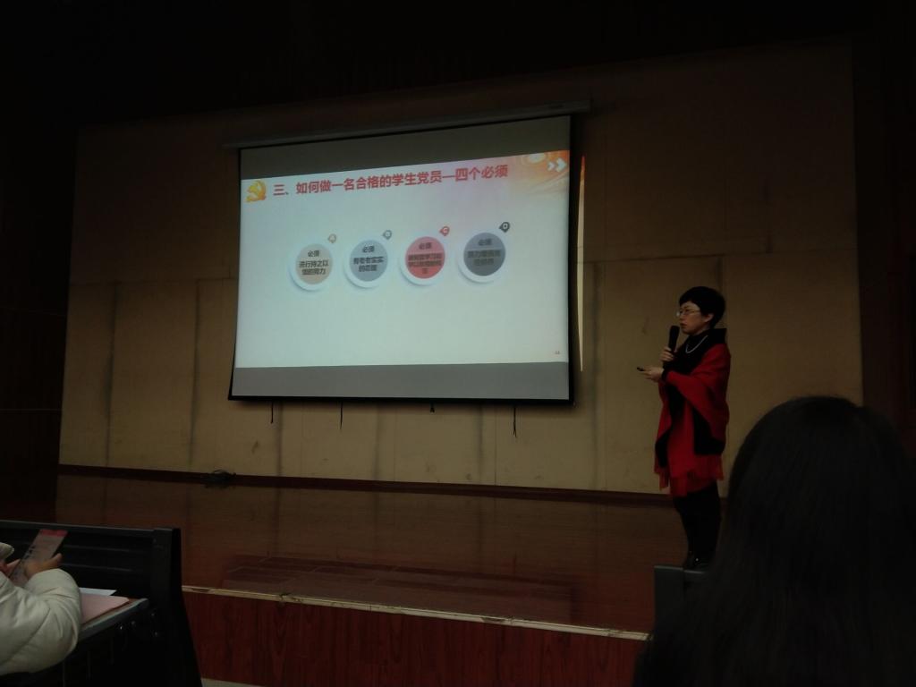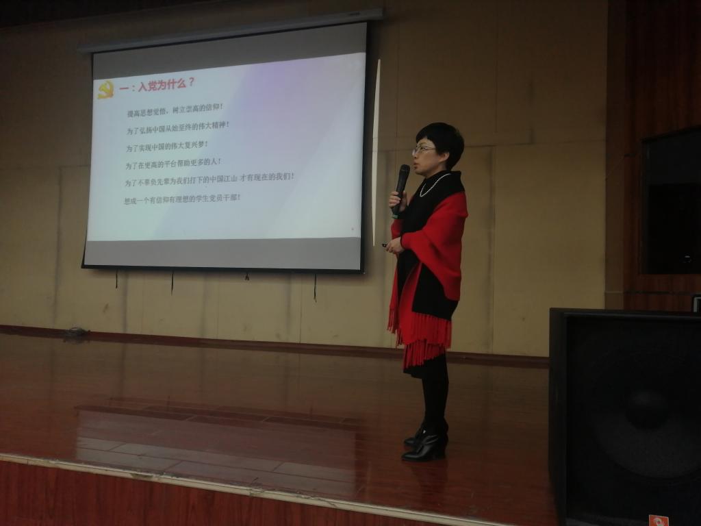 高老师表示,入党是一件非常神圣、严肃的事情,端正入党动机是争取入党的首要问题,有了正确的入党动机才能经受住党组织的考验。她结合在脱贫攻坚、疫情防控阻击战中的优秀党员事迹,以及习近平总书记赴宁夏考察的故事,向在场同学们讲述了什么是一位共产党员的初心和使命。她强调,同学们要认真剖析自己的思想,思考自己的入党动机,只有真正确立起共产主义,才能自觉地为壮丽的共产主义事业奋斗终身。
