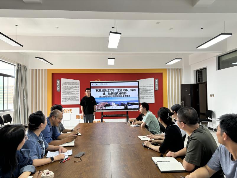为深入学习贯彻习近平总书记关于教育的重要论述,强化使命担当,大力弘扬教育家精神,持续推进教师思想政治和师德师风建设工作,充分展示新时代教师爱岗敬业,无私奉献的精神风貌,9月20日,学院党委牵头在勘物楼A609举办“筑基培元绽芳华”之“正师德、铸师魂,做新时代好教师”师德师风演讲比赛。