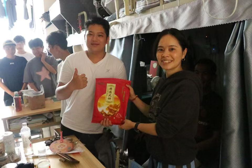 “这次老师来寝室给我们发礼物是我没有想到的,很惊喜也很感动,让我在学校有了像家一样的归属感”,一位同学收到月饼的同学感慨地说。