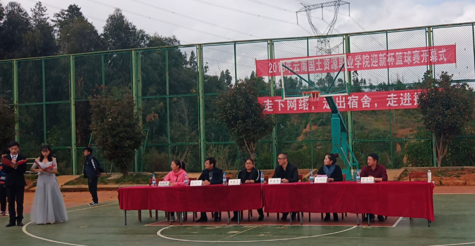 为展现大学生积极向上的精神风貌,加强学生团结协作精神,2019年11月11日中午12点30分,云南国土资源职业学院2019年“迎新杯”篮球赛开幕式在阳宗校区塑胶篮球场举行。副校长寸建平、党委组织部陈瑞平、校团委书记关利钦、后勤基建处王春莲、学安处丁治祥、本科教育学院胡晓燕老师及各学生组织、各学院球队、啦啦队参加了此次开幕式。