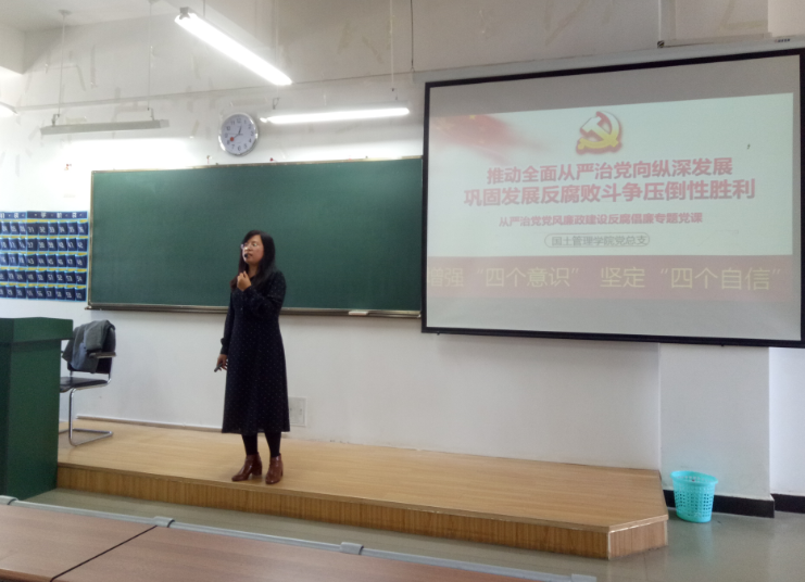 张俊妍老师以“推动全面从严治党向纵深发展,巩固发展反腐败斗争压倒性胜利”和“从严治党党风廉政建设反腐倡廉”为主题讲授党课。张老师指出吧,十九大报告对新时代党的建设提出了新要求:一是持之以恒学习贯彻习近平新时代中国特色社会主义思想,深入开展“不忘初心,牢记使命”主题教育;二是持续深化政治巡视,完善巡视巡察战略格局;三是持续整治群众身边腐败和作风问题,让人民群众有更多更直接更实在的获得感、幸福感、安全感;四是要忠诚于党、忠于人民,带头增强“四个意识”,坚定“四个自信”,做到“两个维护”。