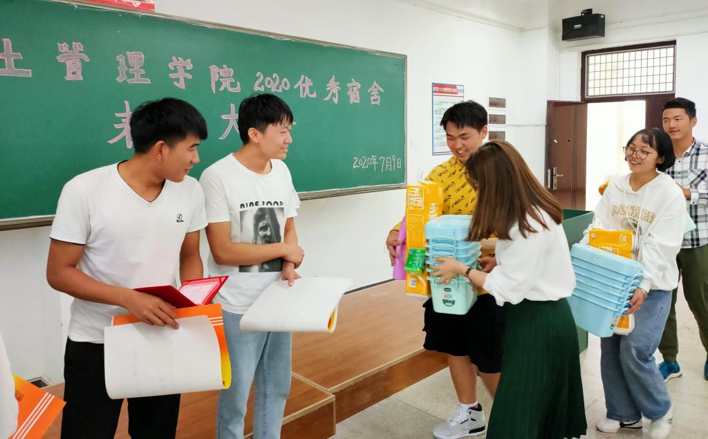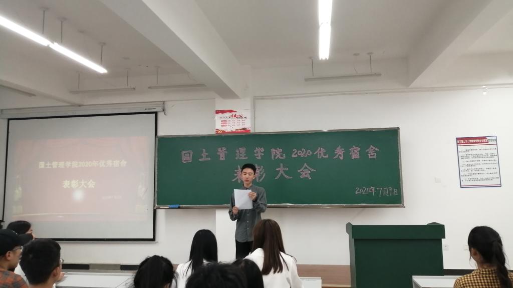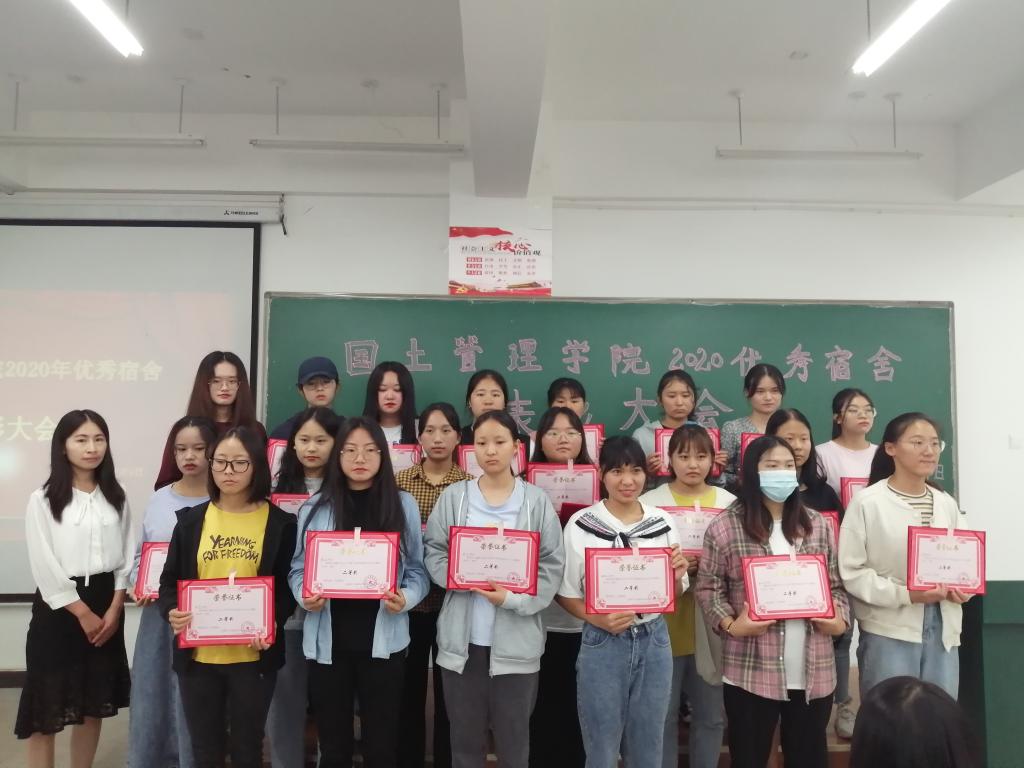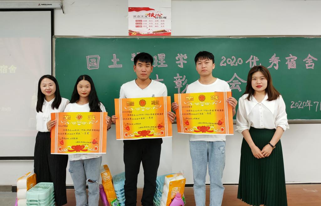 为加快学院文明建设,营造良好的宿舍环境氛围,展示世界杯官网学生宿舍的良好精神风貌,国土管理学院于2020年7月9日下午13:00在勘物楼B316举行优秀宿舍表彰大会。出席本次活动的有国土管理学院团总支副书记申锦华老师、辅导员赵烨老师、付文静老师和获奖宿舍代表。
