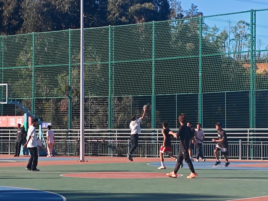 比赛开始前,双方队友相互握手以示尊重,表达友好。随着一声哨响,比赛正式开始。队员们在场上默契配合,运球、传球、拼抢、投篮……每一个动作都凝聚着汗水与智慧,展现出了高超的球技和坚韧不拔的体育精神。观众席上,加油声、欢呼声此起彼伏,成为冬日里最动听的旋律。