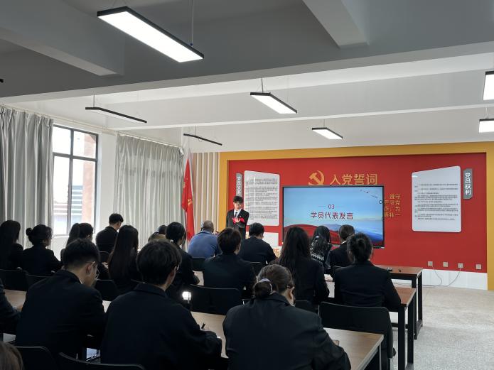 2024级无人机测绘技术1班陈立涛同学作为新学员代表发言。在发言中他表示,全体学员应该争做标兵骨干,担当时代重任,做作风过硬的青年马克思主义者,要在专业学习上做标杆,在学生工作中当模范,在志愿实践上见行动。