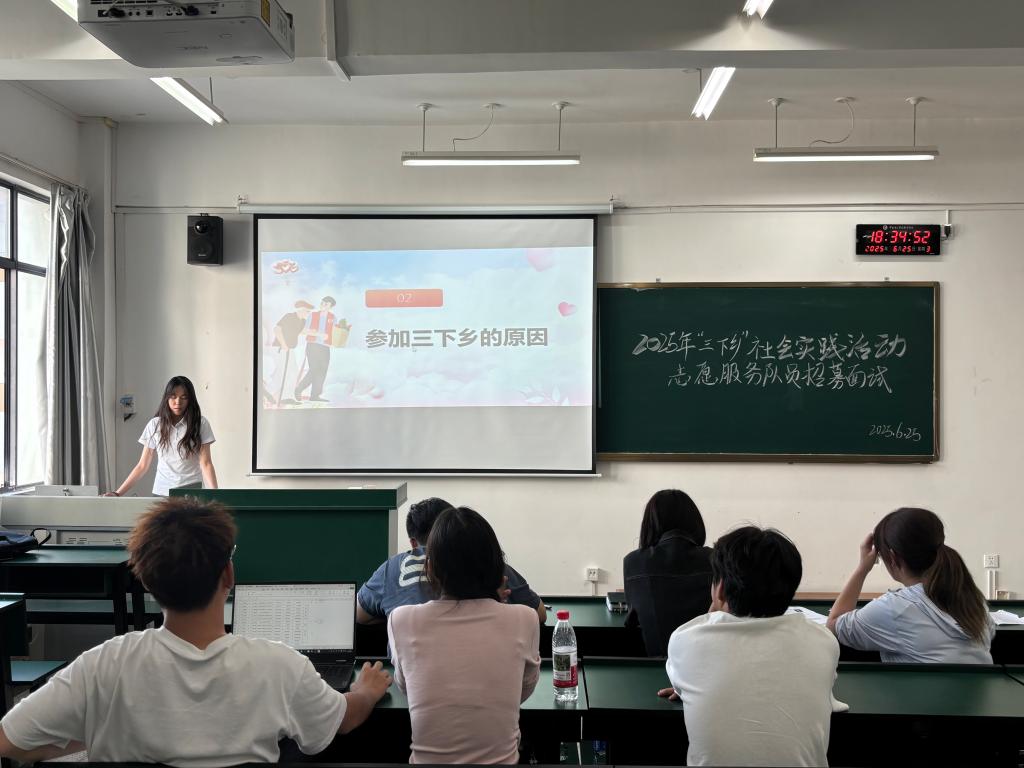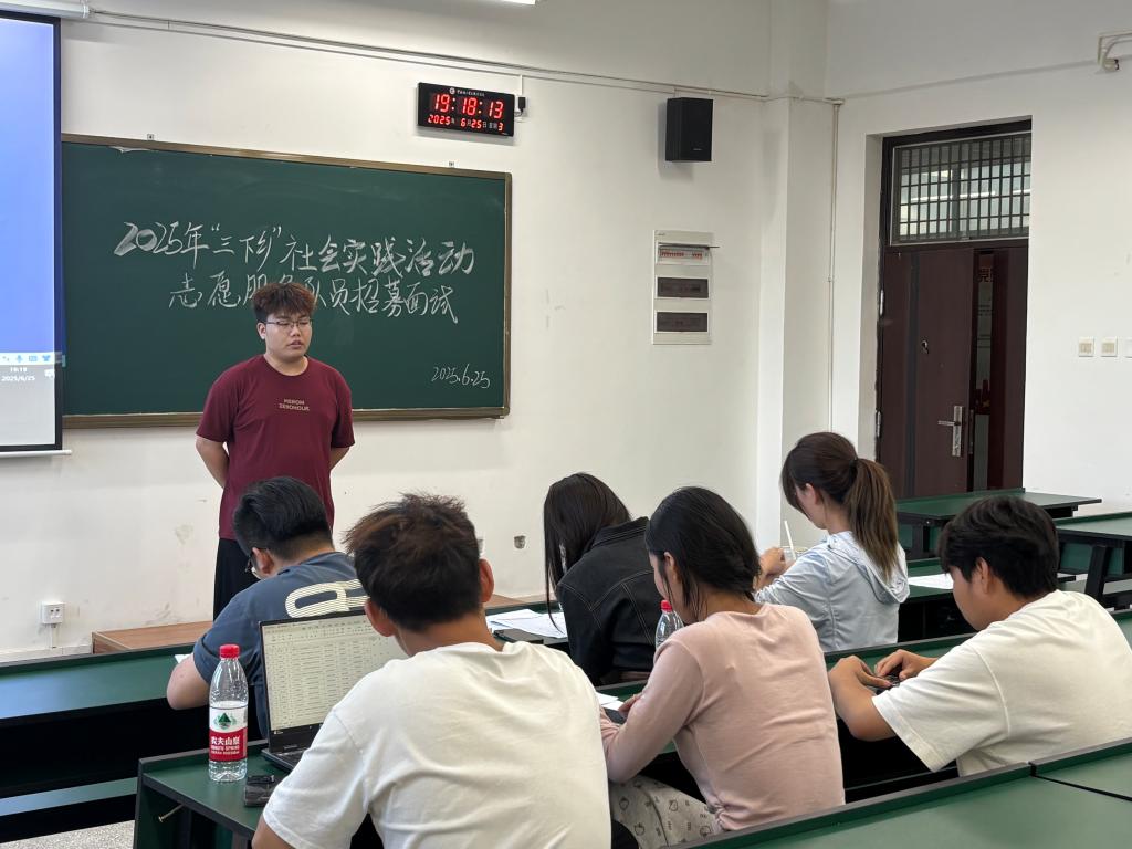 为推动习近平新时代中国特色社会主义思想入脑入心,全面贯彻党的二十大战略部署,引导青年学子在躬身实践中练就过硬本领、厚植为民情怀,深度融入乡村振兴战略大局,世界杯体育官方网站团总支于6月25日在勘物楼B507教室组织开展2025年暑期“三下乡”社会实践活动志愿服务队队员招募面试工作。