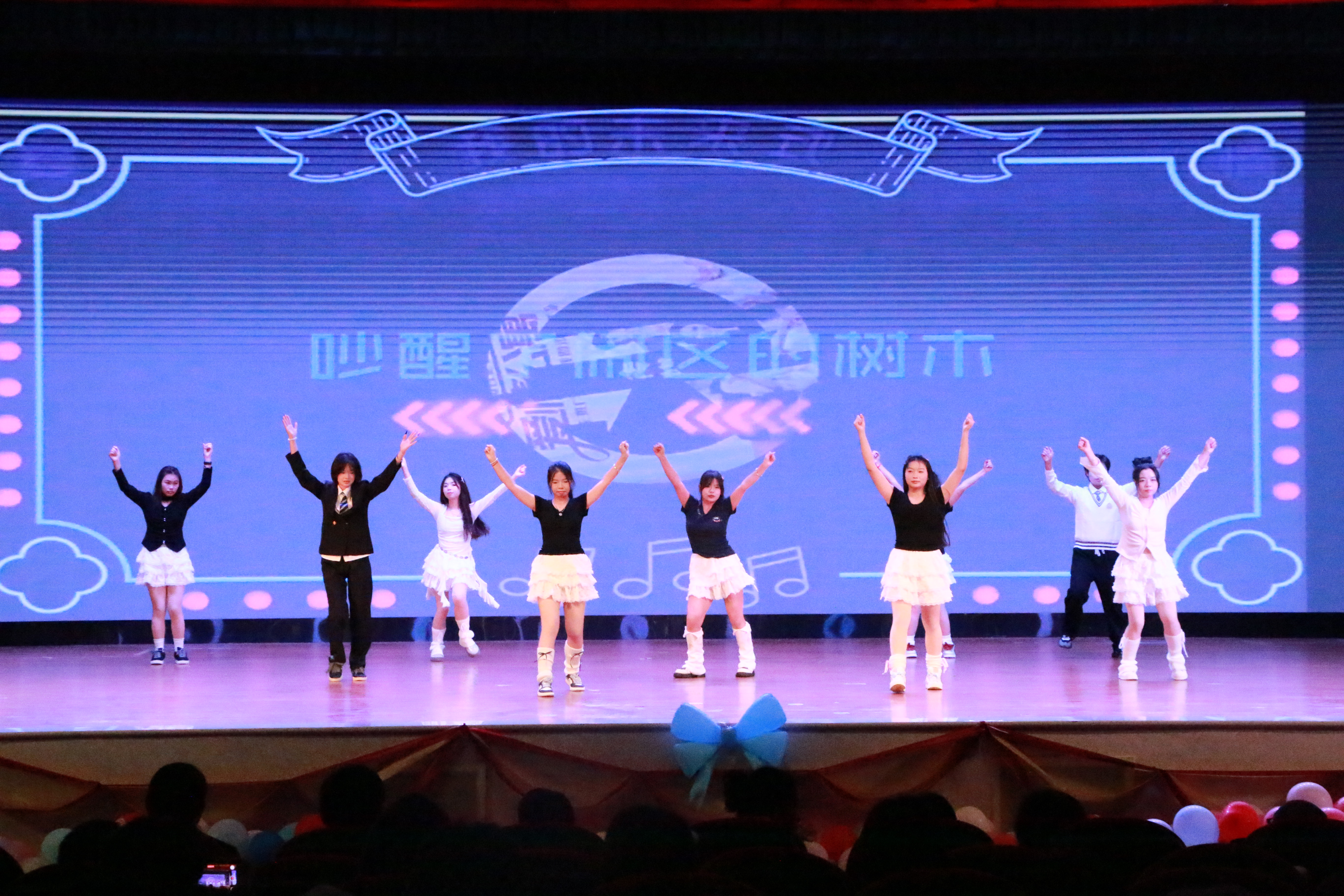 晚会前,大学生艺术团乐队以《让我为你唱首歌》《喜欢你》暖场,旋律点燃现场氛围。