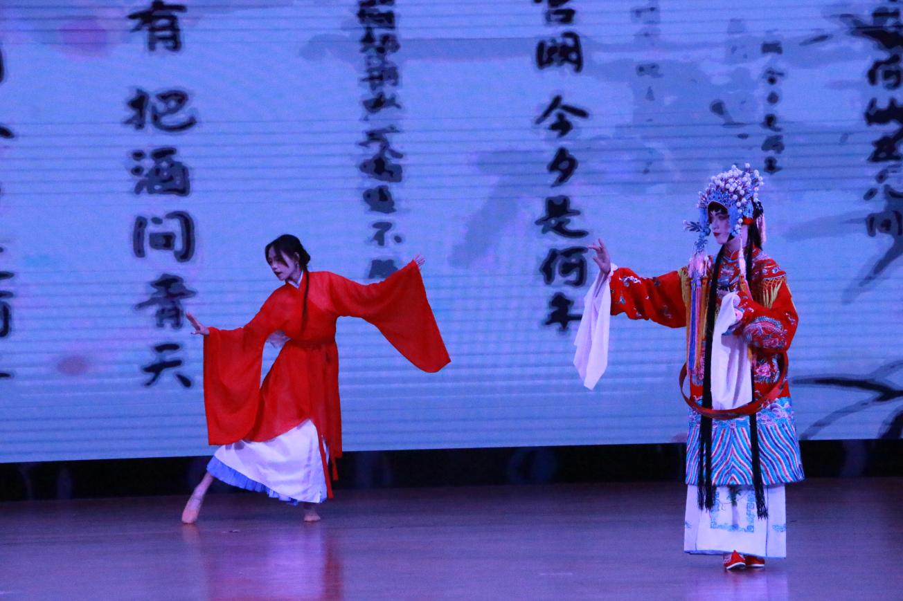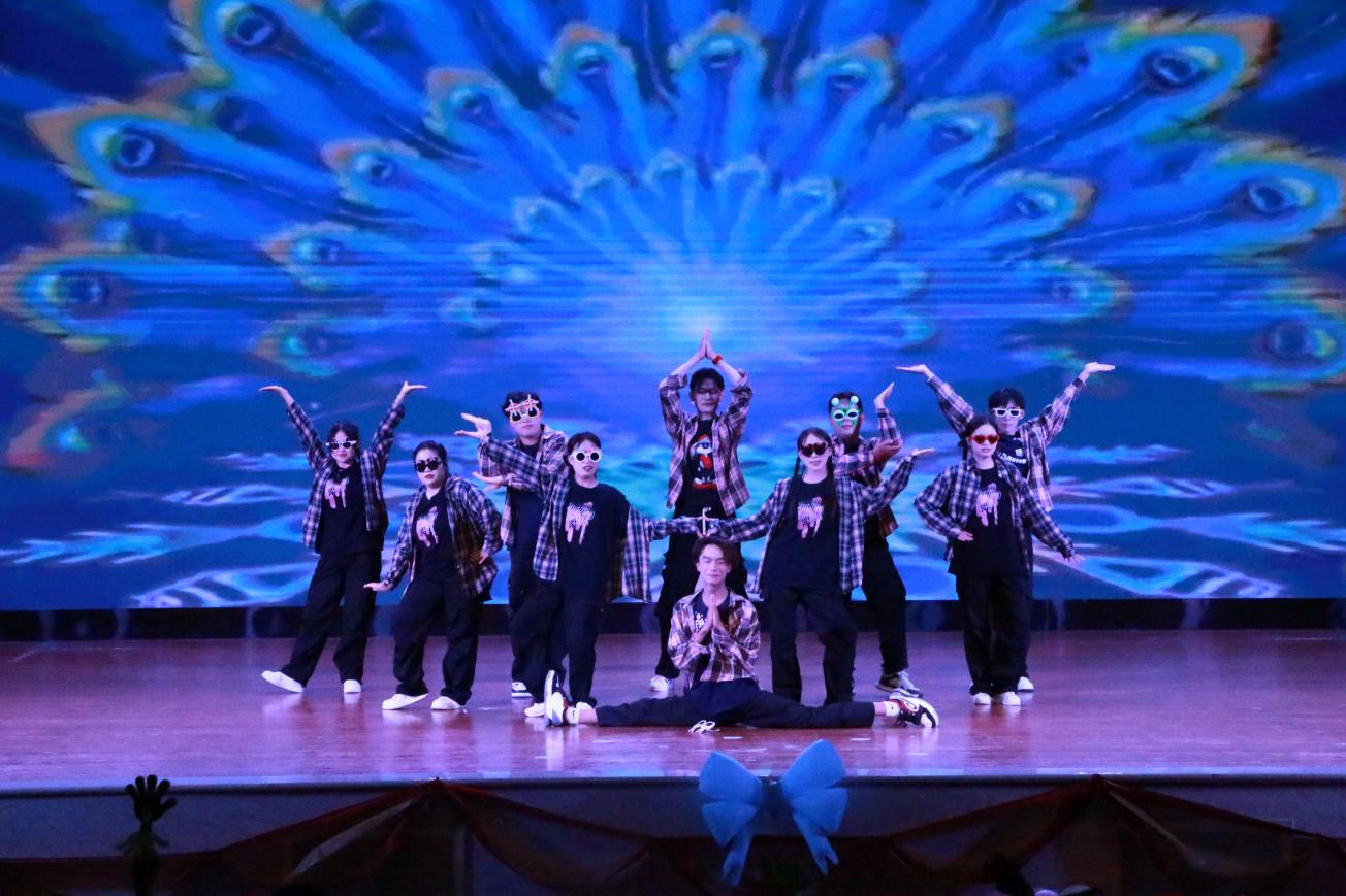 晚会节目多元精彩:大学生艺术团带来舞蹈《青山远黛》,舞者以灵动身姿勾勒出山水意境,尽显东方雅致;学院声乐队演唱《戏曲》,将传统戏曲唱腔与现代流行音乐融合,独特演绎惊艳全场。《从Owl City到澜沧江》串联多风格舞蹈,从动感流行到傣迪风情,展现青春多元魅力。