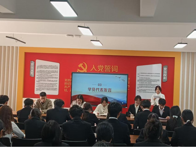 活动过程中,学院团总支书记孙嘉蔚在致辞中对参与本期培训的学员们致以诚挚的祝贺。紧接着,2025级国土资源调查与管理专业陈菊同学作为新学员代表发言。在发言中他表示,全体学员应该以“求知若渴”的态度筑牢思想根基,以“脚踏实地”的行动锤炼过硬本领,以“严于律己”的自觉树立青马形象。