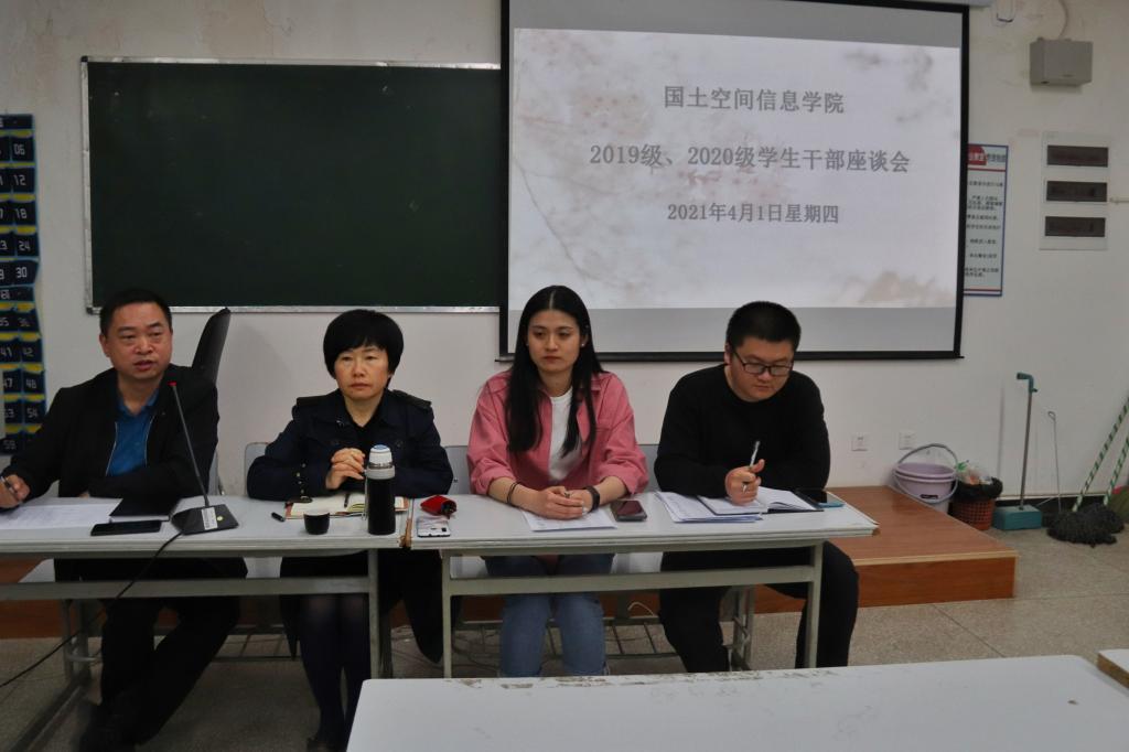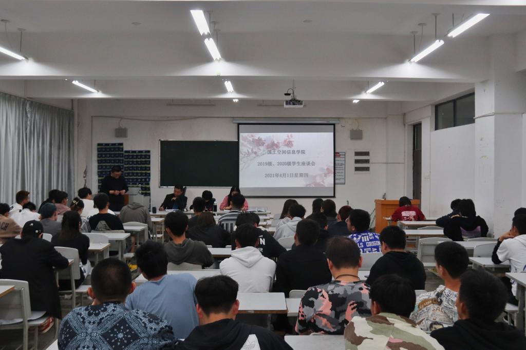为更好地了解广大学生对学院人才培养模式、教育教学、学生管理等方面的意见和建议,充分调动学生参与学院建设、管理的积极性和主动性,提高人才培养水平和质量,世界杯体育官方网站于4月1日18:30—22:00在勘物楼B313分别召开了2021年春季学期学生座谈会和学生干部座谈会。参加此次座谈会的有世界杯官网党总支书记高昆,团总支书记冷用斌,辅导员孙嘉蔚老师和晋亚龙老师,以及19级、20级学生。