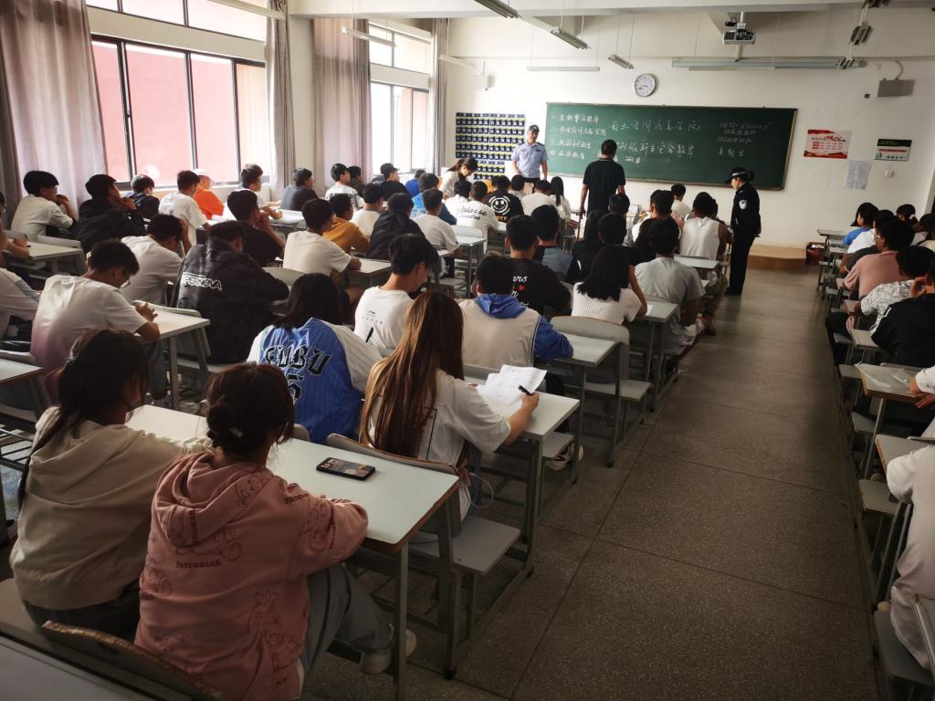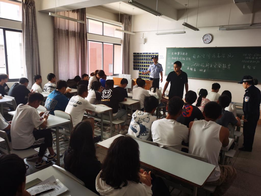 为进一步加强2021级新生法制安全教育,增强学生法制观念及安全防范意识,营造校园安全环境促进学生平安健康成长,在学校保卫处的积极协助下,世界杯体育官方网站于98日下午在笃行楼教室开展21级新生法制安全教育讲座,此次讲座特邀请到了阳宗派出所十余名干警担任主讲人,学院2128个新生班级分批次参加了讲座。