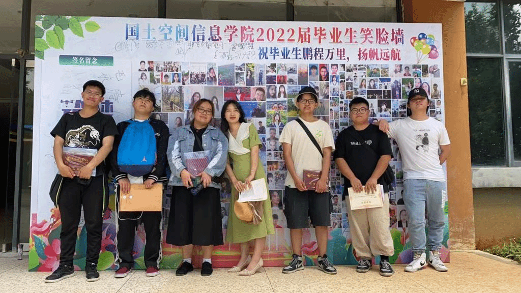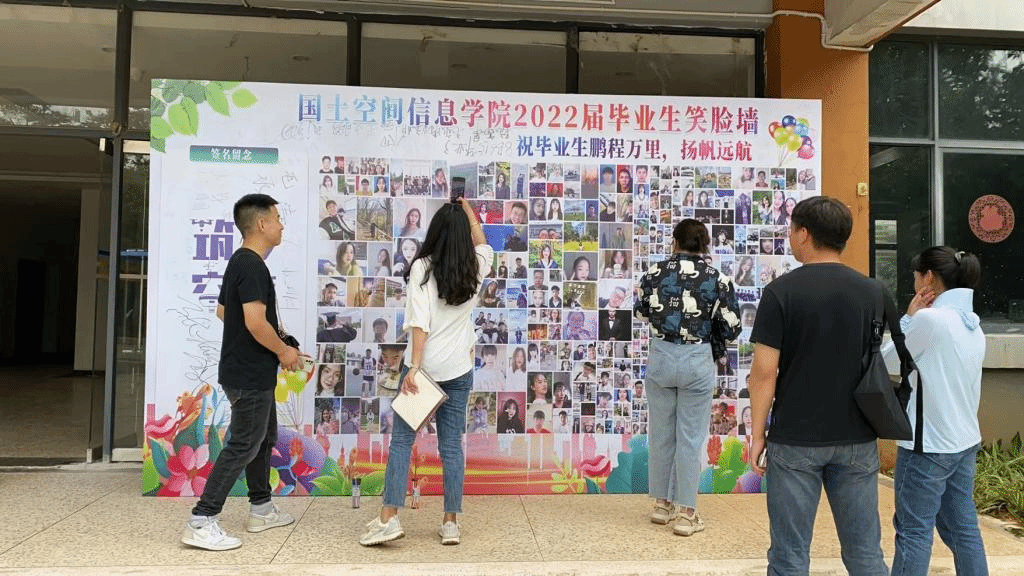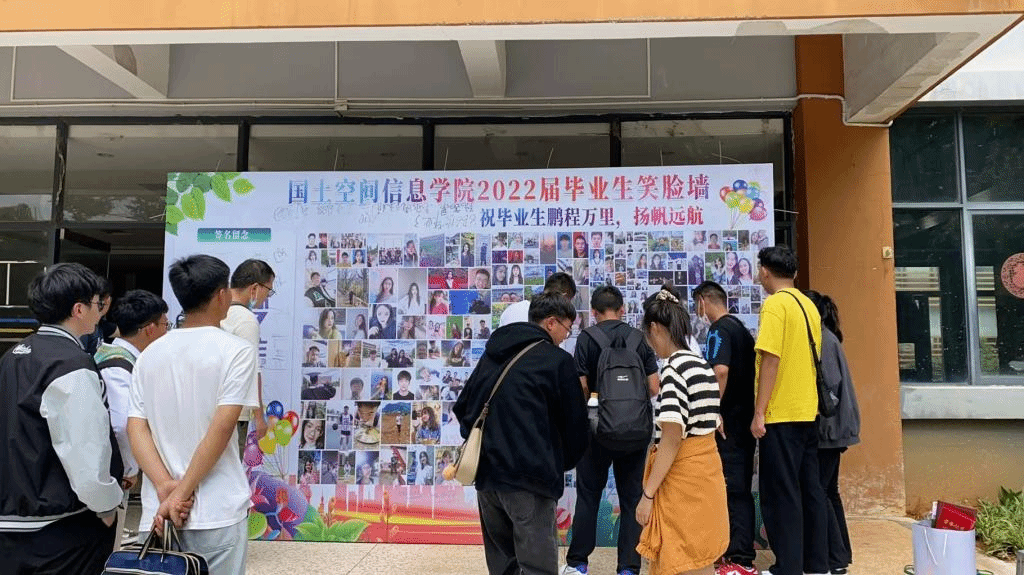 学院还征集了2022届毕业生的笑脸照,并用这些照片制作成笑脸墙,毕业生们纷纷在笑脸墙上签上自己名字,纪念自己美好的大学时光。