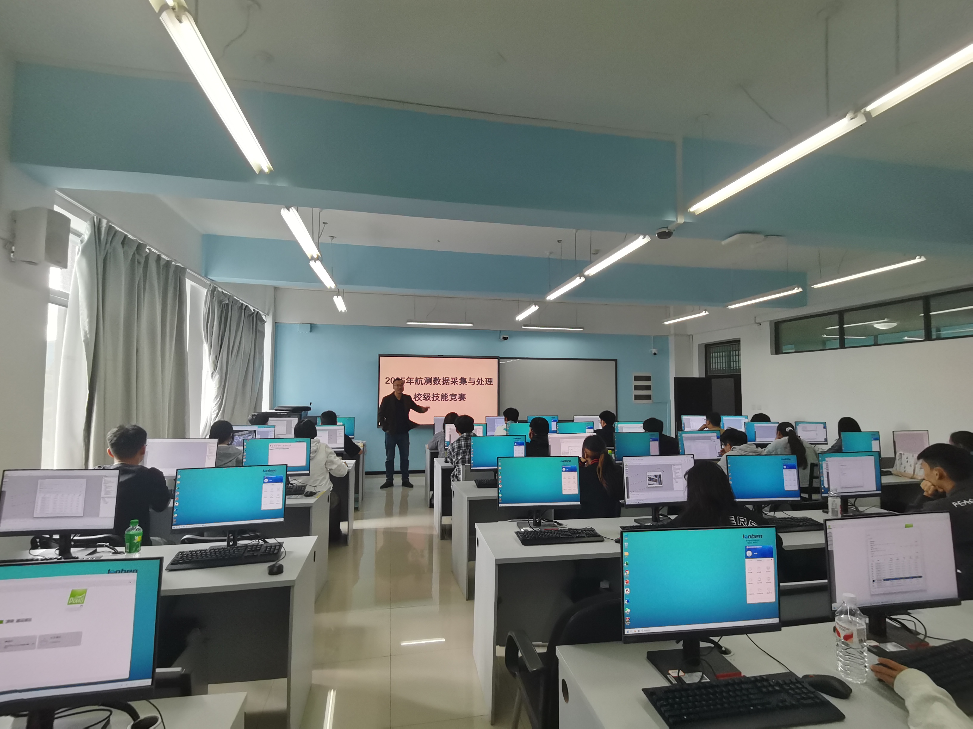 竞赛分为理论笔试与实操考核两部分,内容涵盖外业航飞全套流程、影像数据预处理、影像拼接及数字线划地图(DLG)制作等环节,全面检验学生的实践操作能力、现场问题分析与处理能力。比赛过程中,选手们沉着应对、操作规范,展现出扎实的专业功底和良好的职业素养。