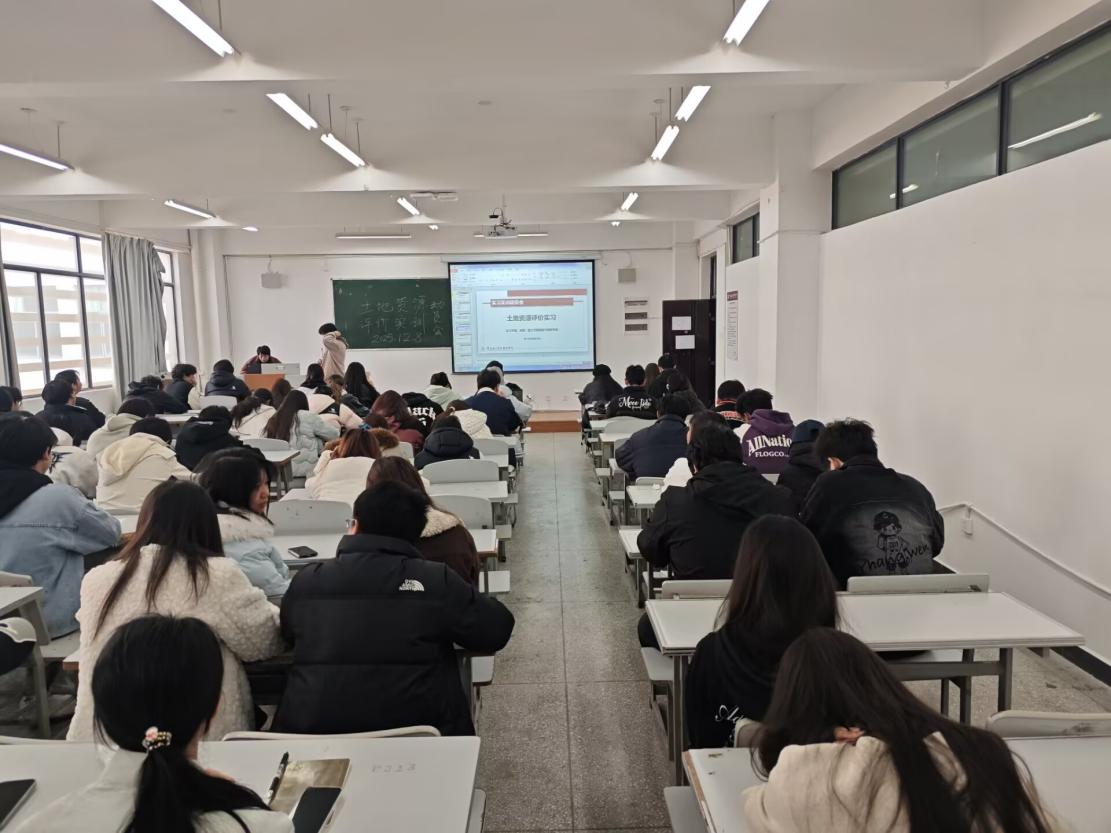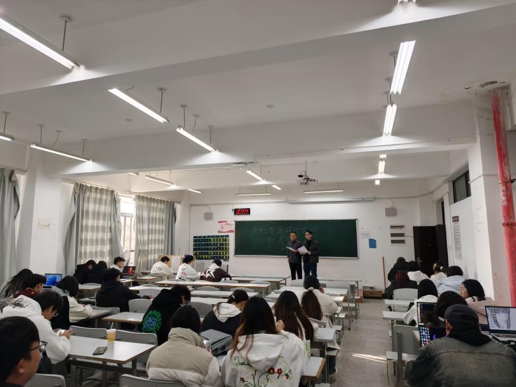 为深化实践教学成效、明确实训核心任务,12月8日上午,2024级国土空间规划与测绘专业4个班级的实训指导教师和春兰、邓传青、陈超、王妍及全体学生,在勘物楼B313、B314教室,共同召开土地资源评价实训动员大会。