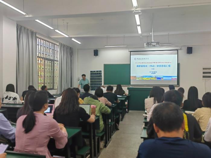齐副校长以“2021年云南职业院校教师素质提高计划国家培训高职名校长(书记)研修”学习为出发点和着眼点,介绍了自己参与培训的心得与感悟,重点对云南与北京、天津“十四五”以来国家级项目成果数量进行了比较分析,并结合本校本院实际指出了我们在政策学习、理念把握、整体谋划、带领团队、狠抓落实、工作状态等方面与北京、天津等地高校之间存在的差距。