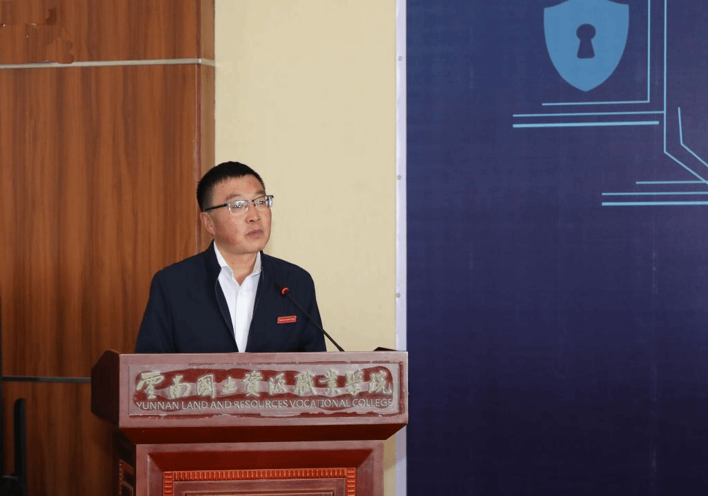 广州南方测绘科技股份有限公司副总经理郭宝宇致辞,他表示,技能竞赛是高校实现创新教育的重要载体,本次技能大赛为学生提供了展示自我、追求梦想的舞台,南方测绘将一如既往地支持测绘教育,致力于测绘地理信息教育的智能化。