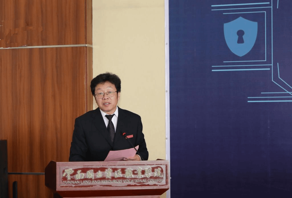 接着,云南国土资源职业学院党委书记牛定柱致辞,他代表学校对各单位、各指导老师和参赛选手的到来表示热烈欢迎,对向大赛筹备工作提供支持和帮助的领导、嘉宾表示衷心感谢。他表示职业扬起人生风帆、技能成就精彩人生,希望参赛选手充分发挥聪明才智、沉着认真对待每一项赛程,发扬“量天测地绘我河山”的精神,赛出风格、赛出水平,争做新时代的追梦人、圆梦人。