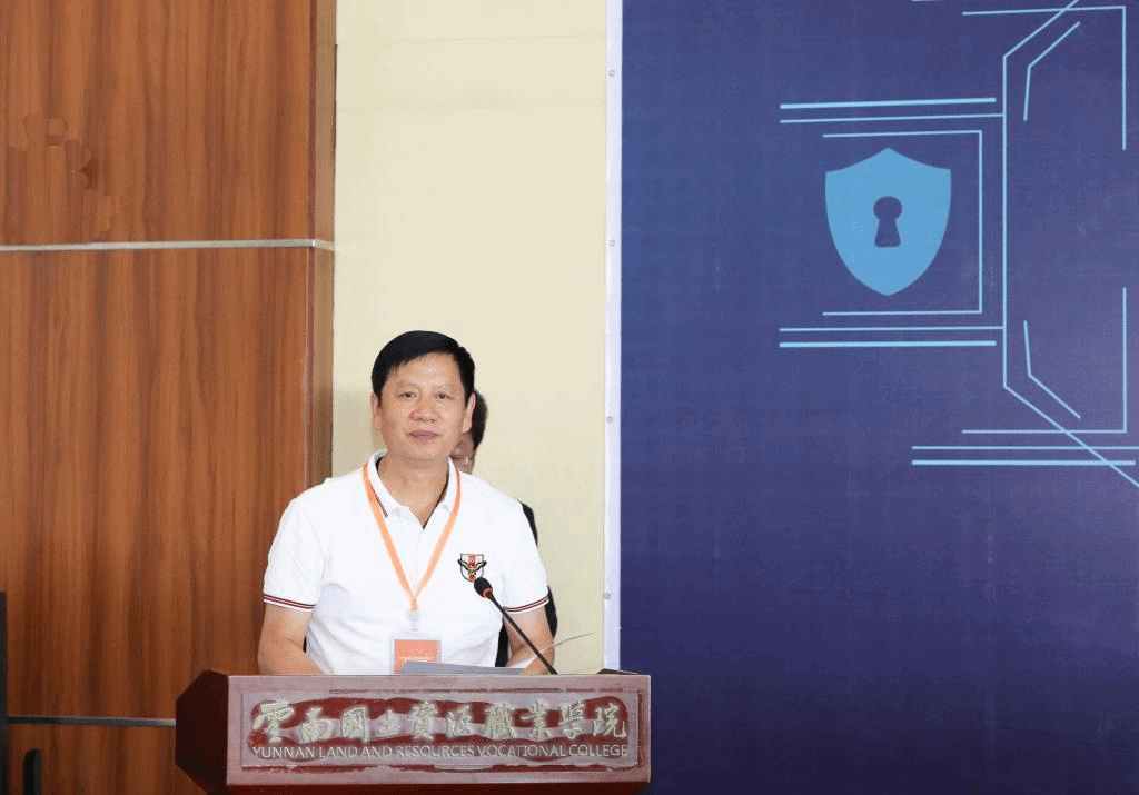 云南省教育厅职业教育与成人教育处调研员高明磊致辞,他表示,职业院校技能大赛的举办有着重要的意义和作用,希望广大学生能积极弘扬“劳动光荣、技能宝贵、创造伟大”的时代风尚。