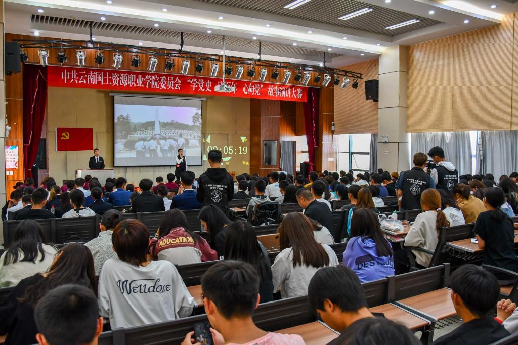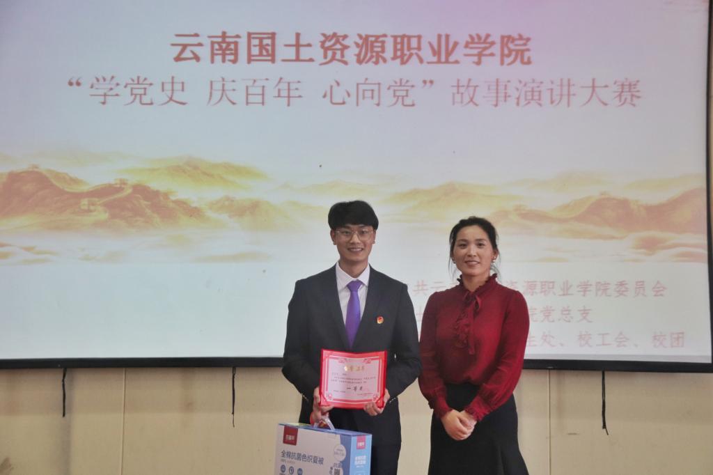 一百年风雨兼程,一世纪沧桑巨变,2021年是中国共产党成立100周年,中国共产党从星星之火到燎原之势,从开天辟地到新天新地,从革命到执政,从解放到复兴,整整100年,这是一个前无古人的伟大创举,这是一部最为惊心动魄的奋斗史诗。为庆祝这特殊的一年,深入贯彻落实党中央的决策指示,我校于4月21日下午2点在光荣讲堂举办“学党史,庆百年,心向党”故事演讲大赛决赛。本次比赛由中共云南国土资源职业学院委员会主办,世界杯体育官方网站党总支承办,组织部、学生处、校工会、校团委协办。校长张建雄、副校长王国彦、校工会常务副主席苏丽丹、校团委书记关利钦、组织部部长吴云恩、学生处处长李广涛、信息服务中心主任冷福庆、马克思主义学院院长张延星、世界杯体育官方网站党总支书记高昆、素质教育学院蒋芳、马克思主义学院庞璐出席比赛,各学院师生代表到场观摩比赛。