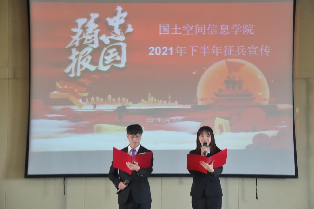 2019级地籍测绘与土地管理三班廖言志同学朗诵了《当兵,是我们庄严的成人礼》。铿锵有力的朗诵声既表达了他对中国人民解放军的敬佩,更激发了同学们在军营中绽放青春光彩的热情。