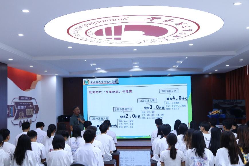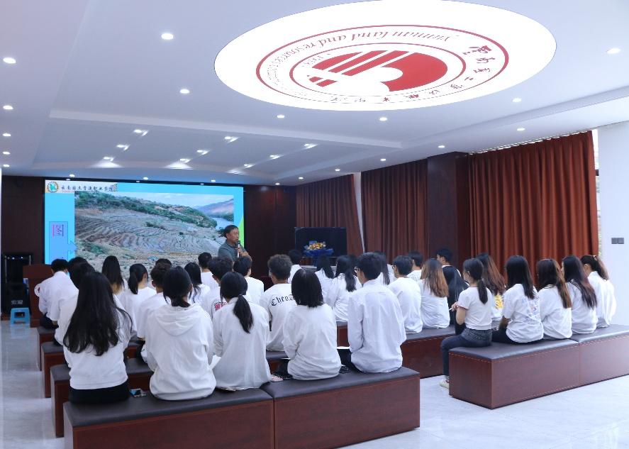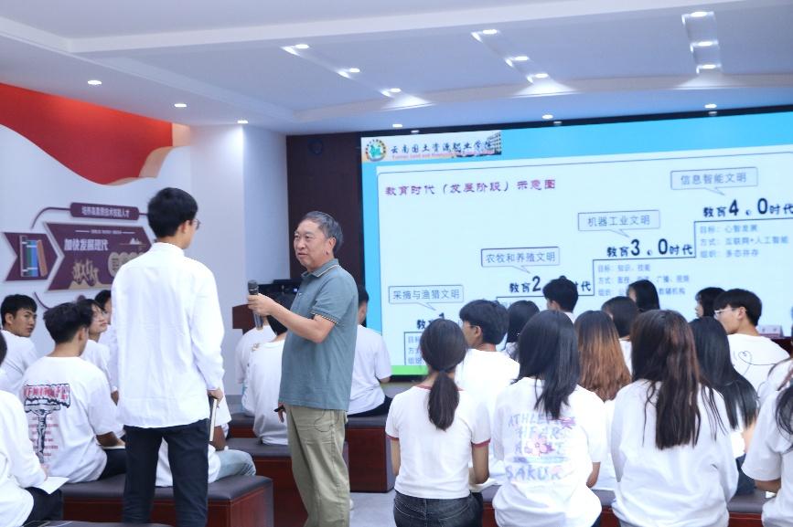 接着,李华老师结合自身工作经历向大家分析了当下的教育发展,提出了“改变固化思维,扩展认知格局”观点,强调当下应该积极调整认知,适应飞速发展的社会,做经济建设的侦察兵。他还勉励同学们发扬“特别能战斗,特别能吃苦,特别能忍耐,特别能奉献”的国土四特别精神。