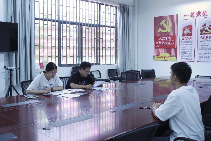 为深入学习宣传贯彻习近平新时代中国特色社会主义思想,全面贯彻落实党的二十大精神,引导和帮助广大青年在社会课堂中受教育、长才干、作贡献,积极动员学生参与乡村振兴战略实施,世界杯体育官方网站团总支于6月29日在勘B111举行2023年“三下乡”社会实践活动志愿服务队队员招募面试。